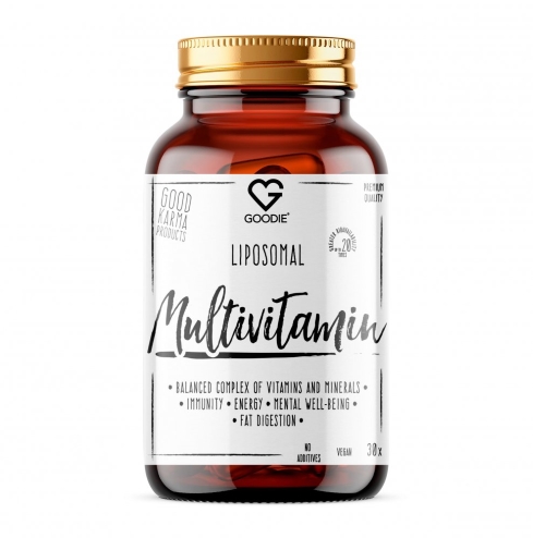 GOODIE Liposomální Multivitamin je vyvážený komplex vitamínů a minerálních látek, který je potřebný pro optimální fungování těla. Jednotlivé složky spolupracují synergicky a vzájemně zesilují svoje účinky. Liposomální doplňky stravy se vstřebávají až 20krát lépe než běžné doplňky. Ty naše se vyrábí jedinečnou metodou bez použití chemikálií a vysokých teplot, díky které je absorpce ještě účinnější.